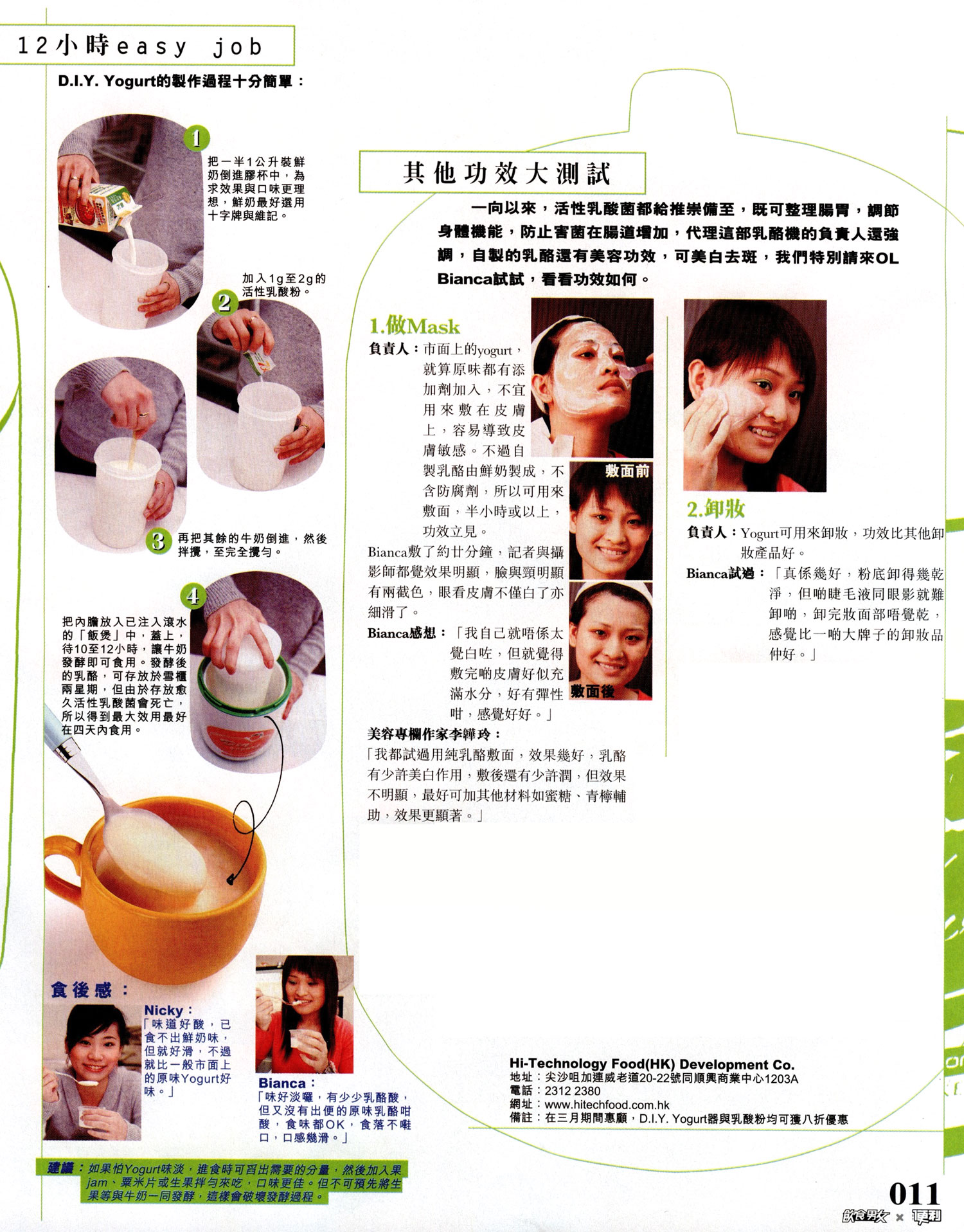 現在由美國 Culture System, Incs成功研究出每一克含60億以上活菌的DIY 乳酪,包括 :