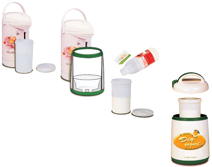 將煮沸熱水倒入發酵器內,至標示水位線即可。再將盛有鮮奶的內容器放入發酵器內,封蓋保溫10至12小時,取出內容器,看到凝結成布丁狀便可食用,或放入冰箱冷藏,4天內吃完最佳。